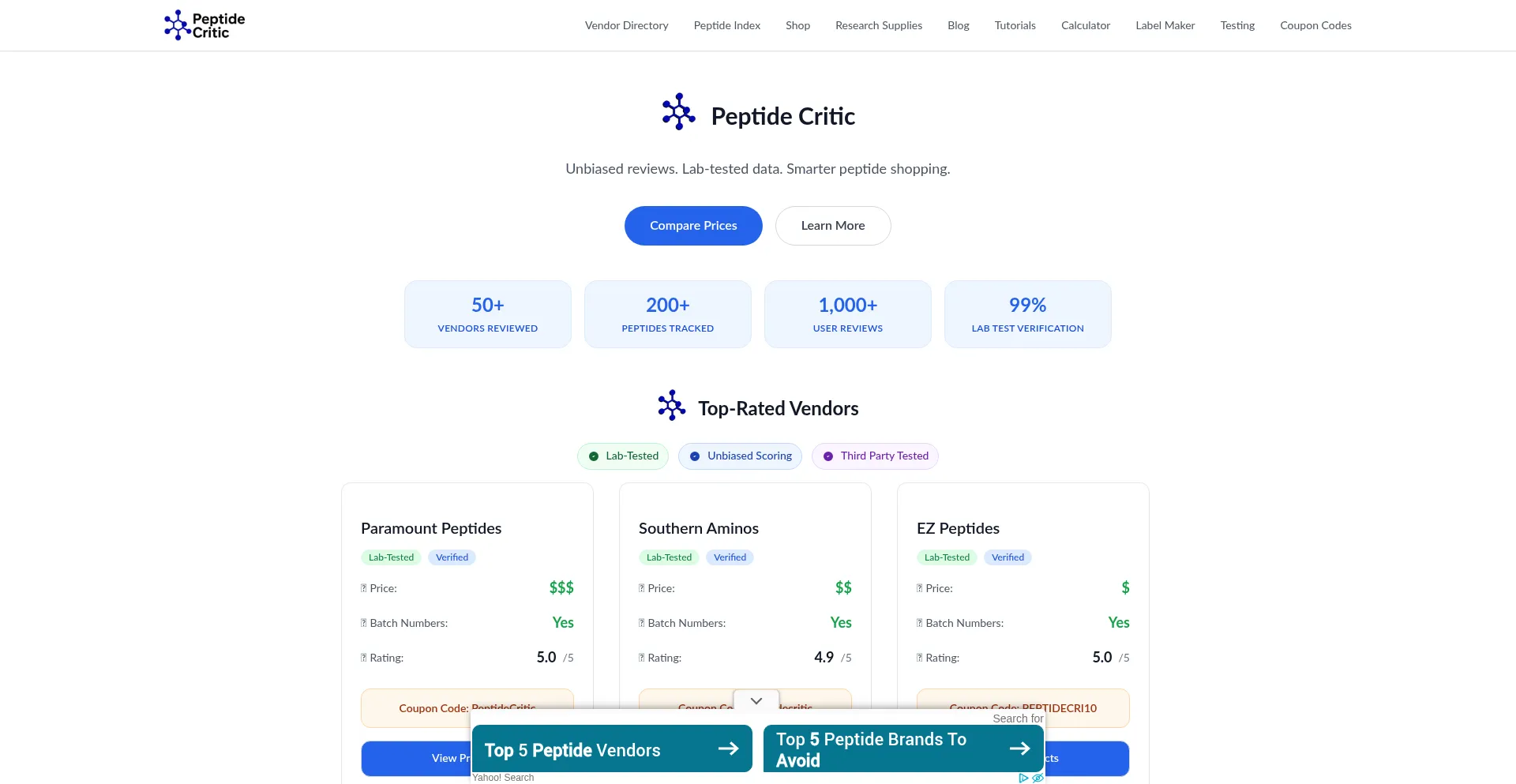 Peptide Critic eliminates dishonest pricing with clear, transparent, community-driven data—helping modern researchers make informed choices with confidence.
