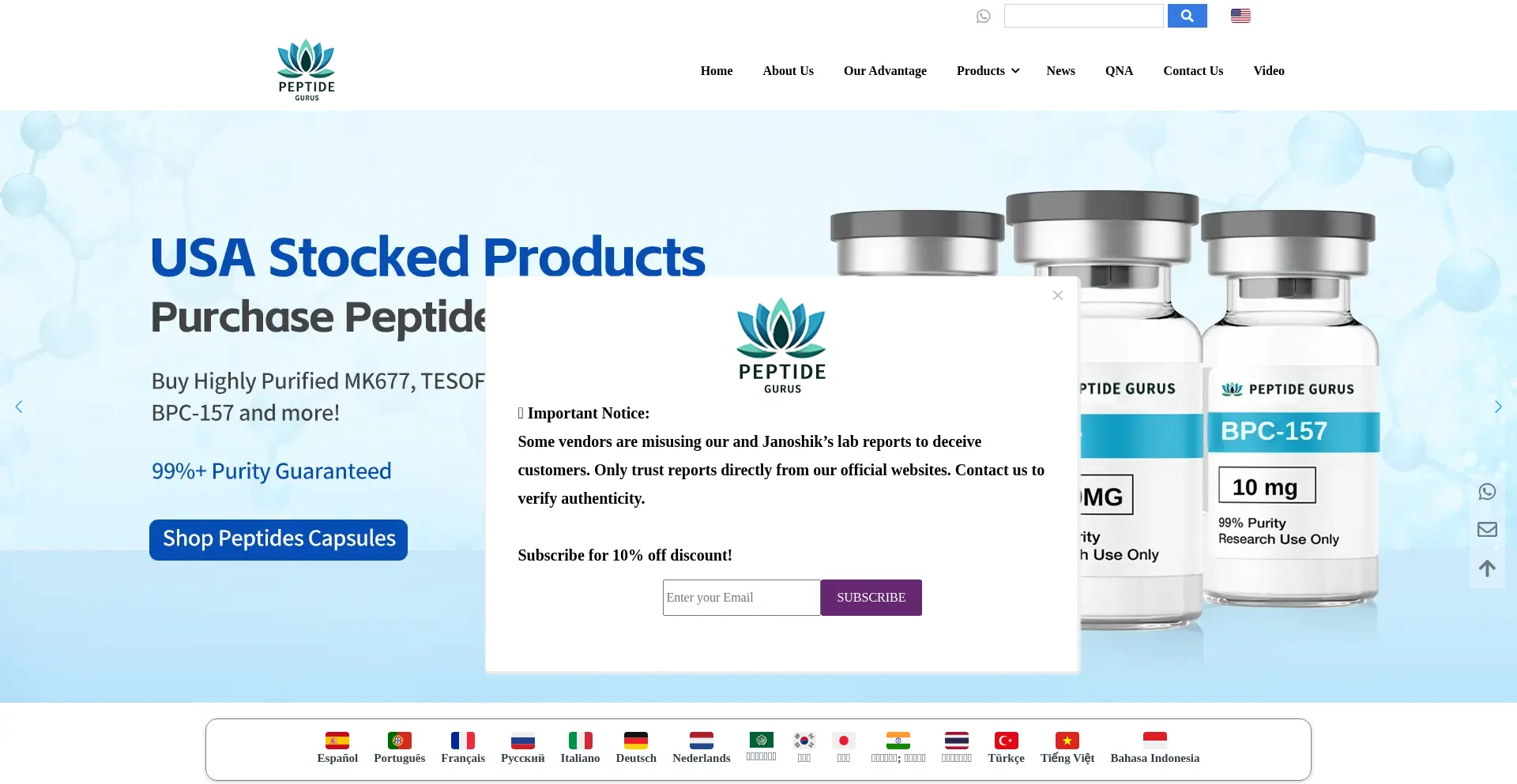 帮助保护他人,快在社交媒体上分享此页面吧!知道peptidegurus.com的人越多,骗子就越难得逞。 通过在社交媒体上分享此页面,帮助更多人发现可靠的peptidegurus.com吧!