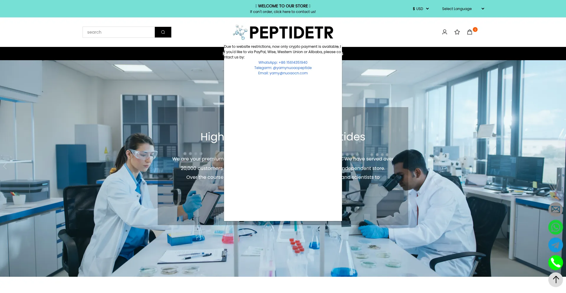 帮助保护他人,快在社交媒体上分享此页面吧!知道peptidetr.com的人越多,骗子就越难得逞。 通过在社交媒体上分享此页面,帮助更多人发现可靠的peptidetr.com吧!