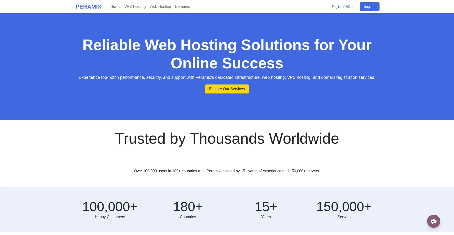 Discover reliable and affordable web hosting services with 24/7 support from Peramix. Sign up for VPS hosting and domain registration today!