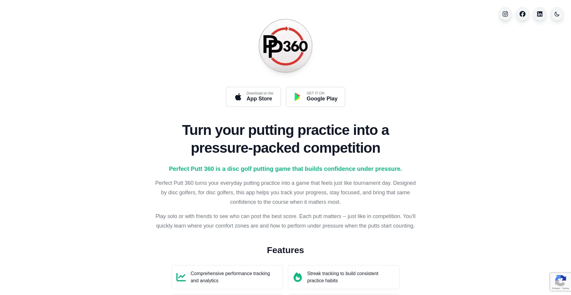 网站上存在社交媒体链接表明 perfectputt360.com 在社交媒体上维护官方账户,这是可信度和参与度的积极信号。