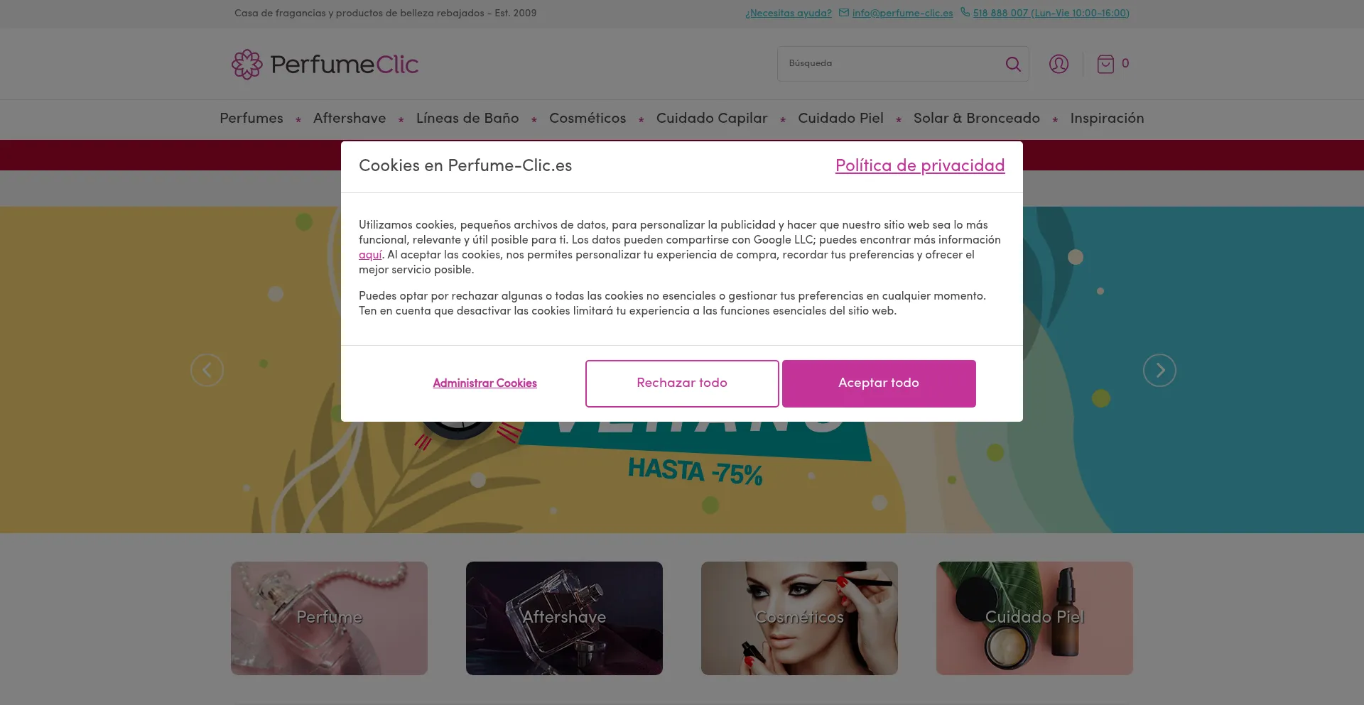 Perfumes, aftershaves y productos de belleza de las mejores marcas. Hasta el 75% de descuento PVP.