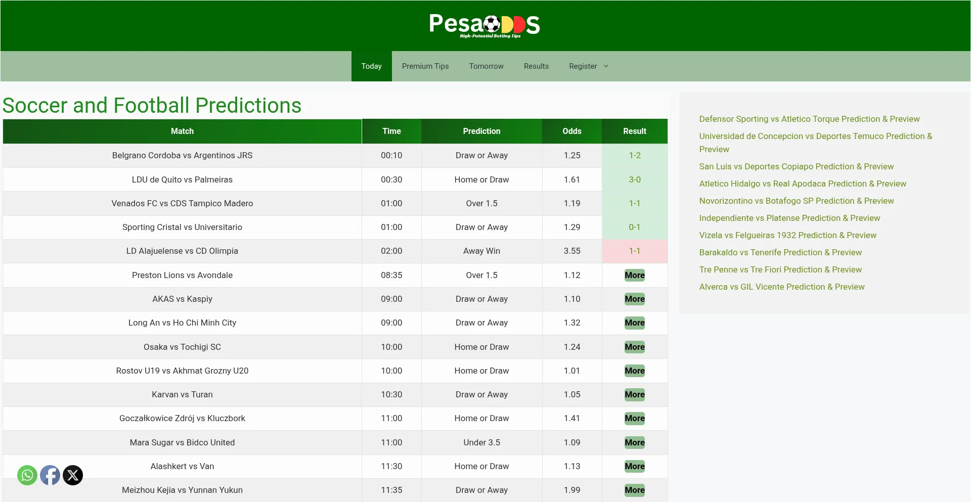 Pesaodds is home to High Potential Soccer and Football Predictions. We provide football betting tips everyday to guide your bet selection.