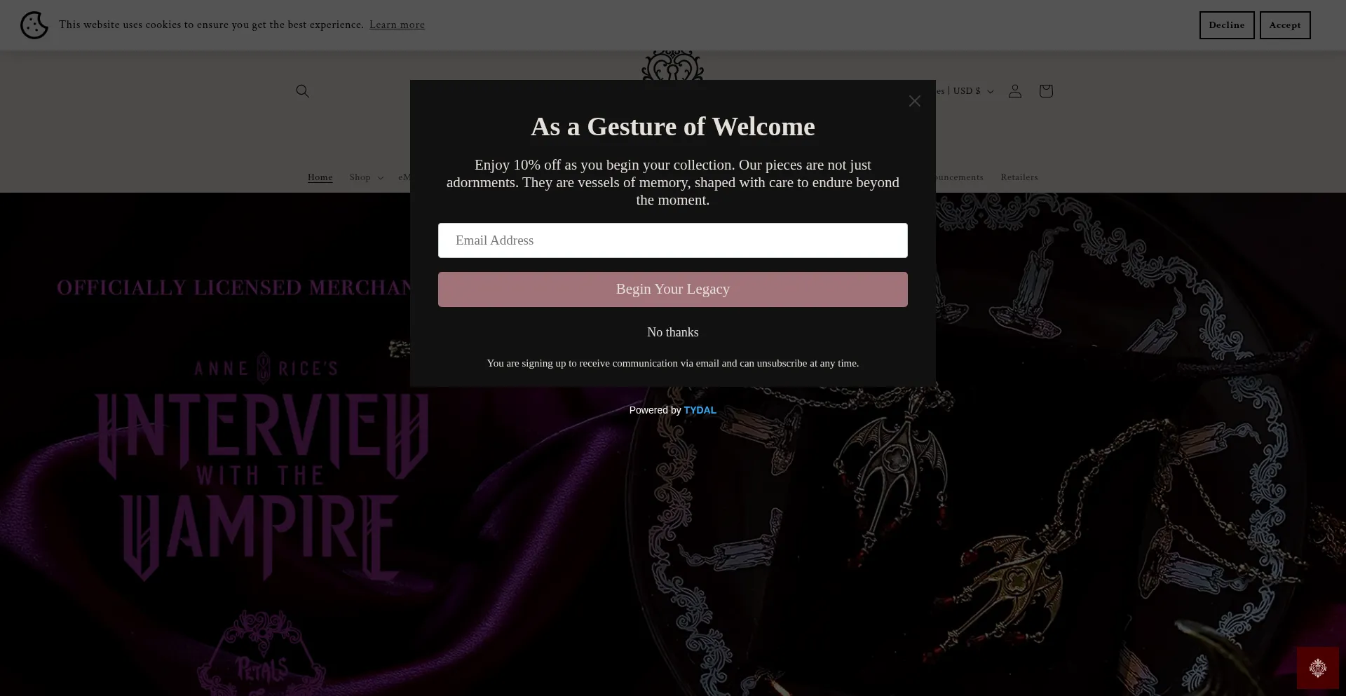 该网站实现符合GDPR或CCPA等隐私法规的cookie同意机制。这表明 petalsandpoison.com 遵守数据保护标准并为用户提供对个人数据收集实践的控制。