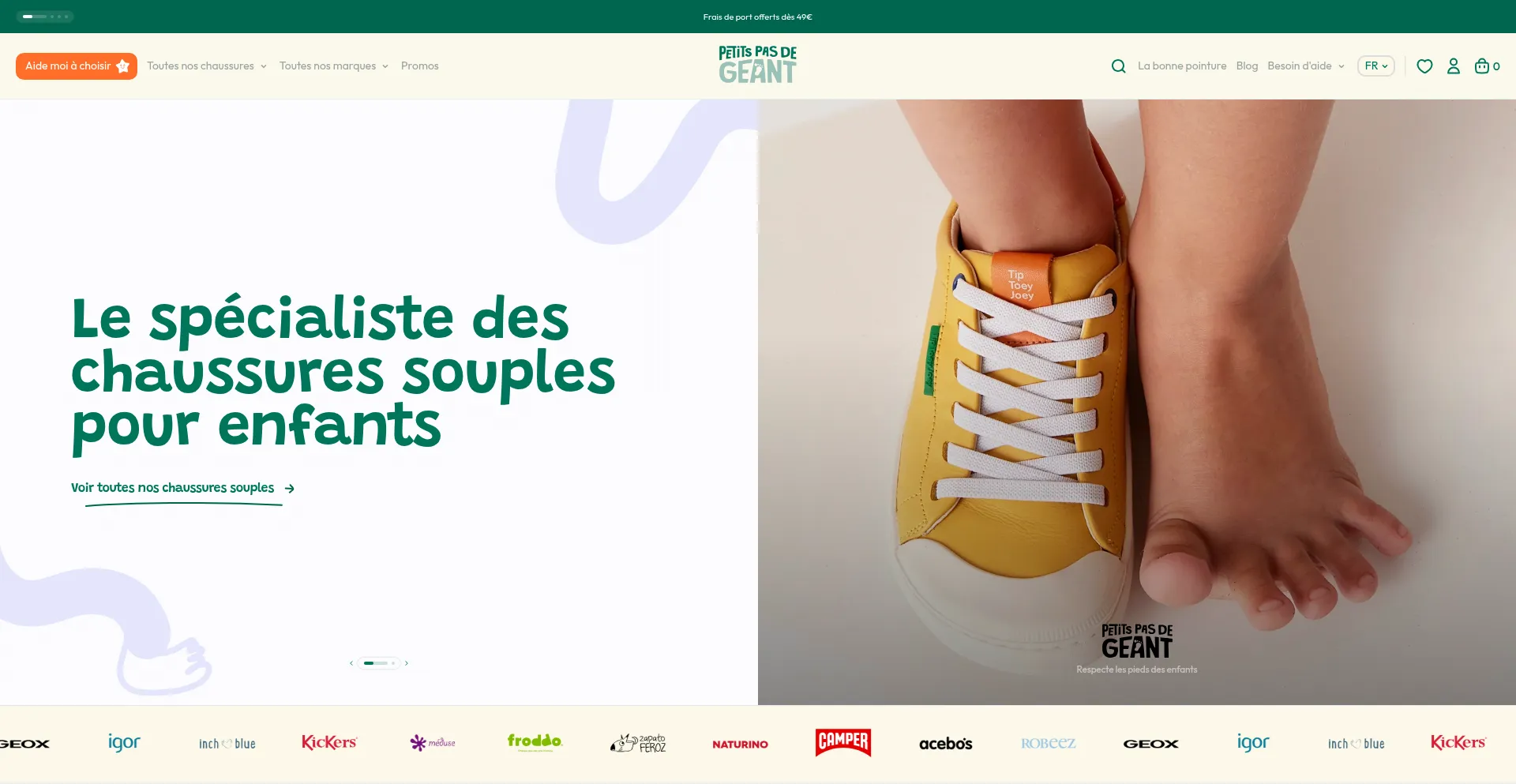 Découvrez Petits pas de Géant, votre boutique en ligne spécialisée dans les chaussures souples et barefoot pour enfants. Nos modèles de chaussures respectueuses sont conçu...