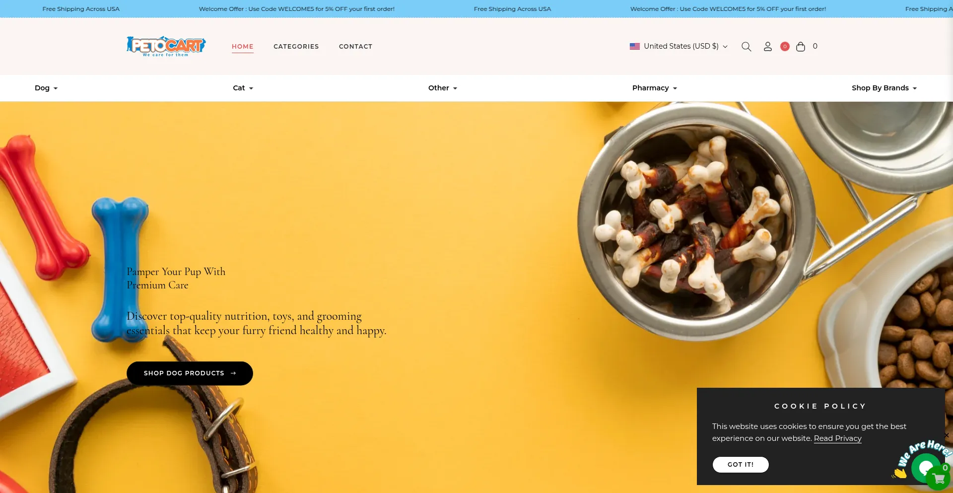 Shop Petocart for premium pet food, toys, and health essentials for dogs, cats, and more. Enjoy free shipping across the USA and 5% off your first order with code WELCOME5.