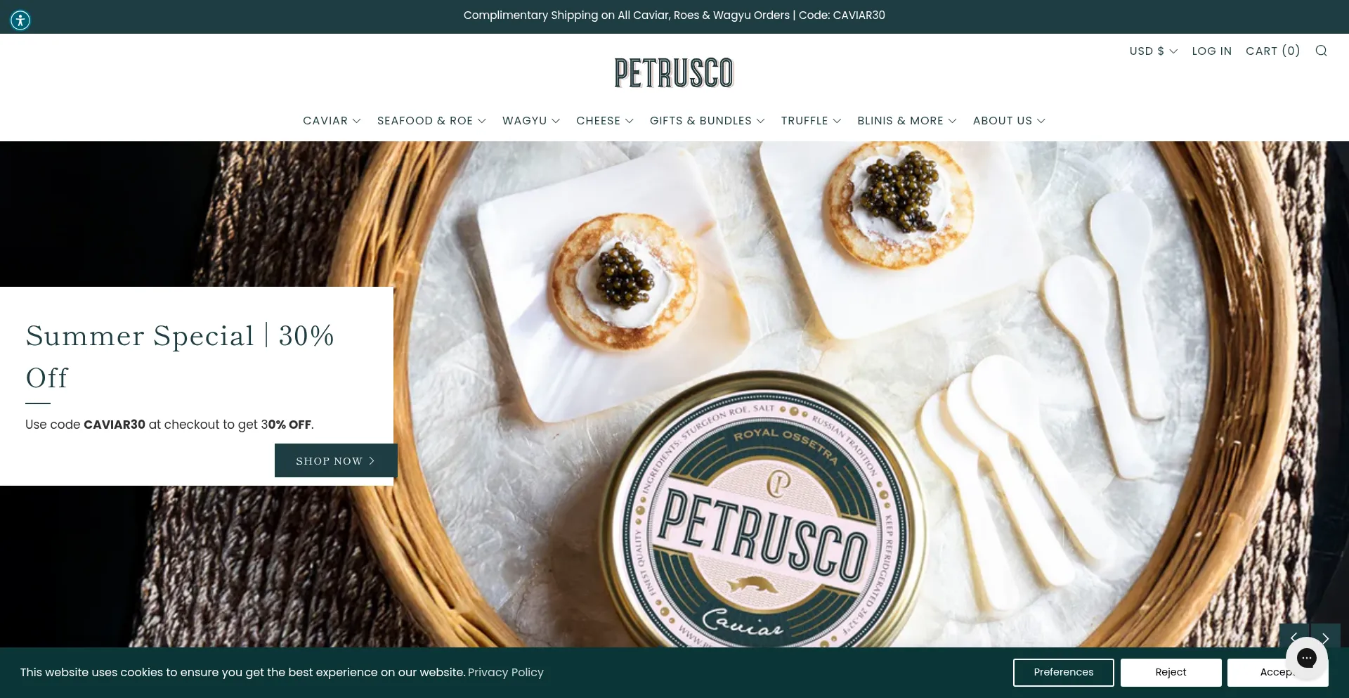 Petrusco Caviar offers the most premium caviar online. Shop our selection of caviar & wagyu products and enjoy complimentary shipping on orders over $100.