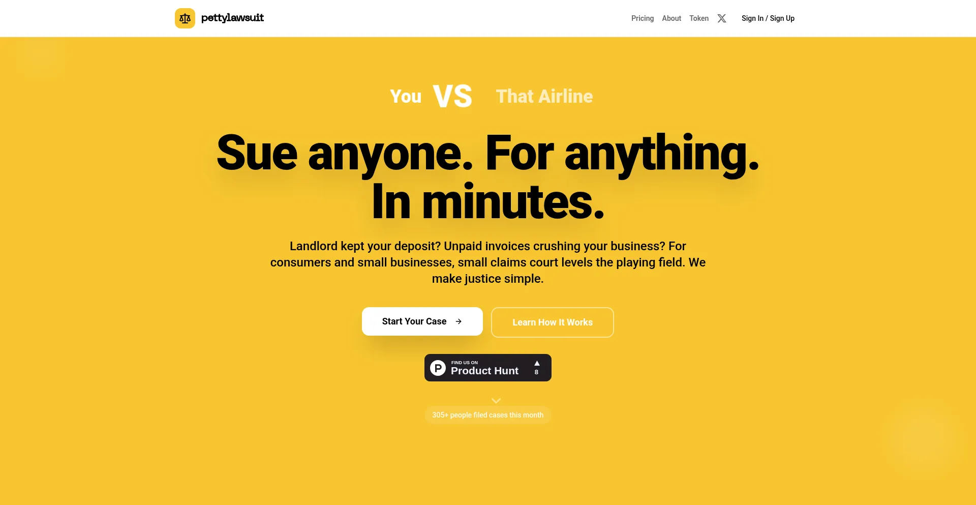 pettylawsuit.com 在 Product Hunt 上列出,这是一个产品发现和社区反馈平台。