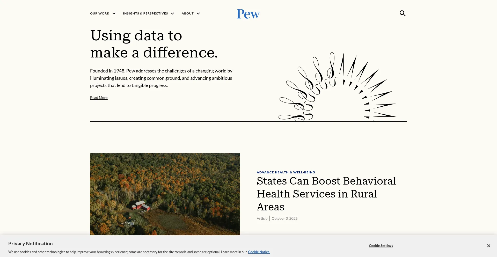 Pew's work lays the foundation for effective policies and practices by invigorating civic life, conducting research, informing and engaging citizens, linking diverse interests t...