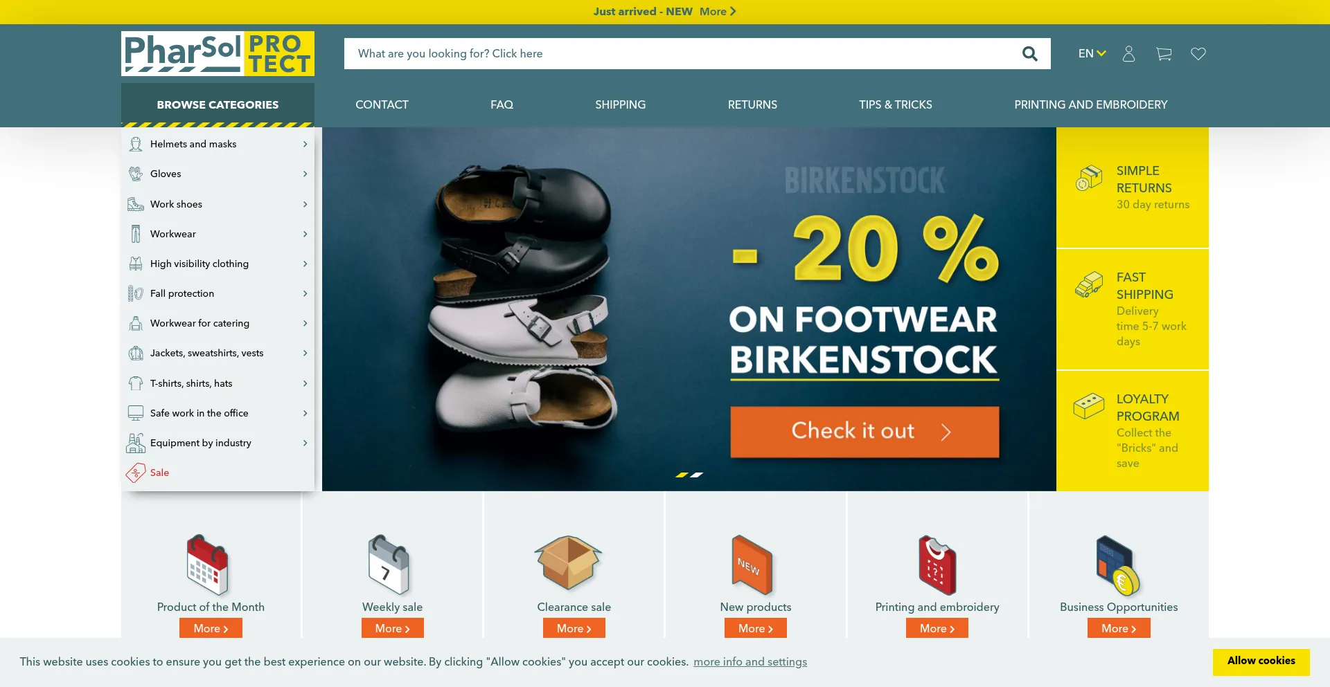 A specialized online store with personal protection and workwear Pharsol Protect offers a wide selection of work clothes, work shoes and protective equipment.