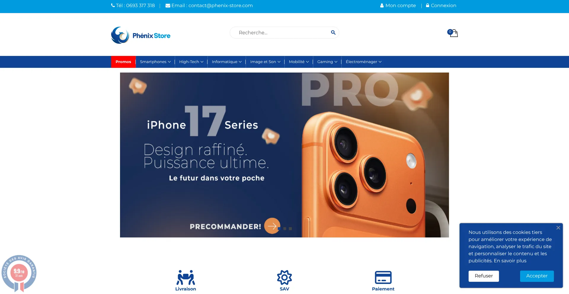 网站上存在社交媒体链接表明 phenix-store.com 在社交媒体上维护官方账户,这是可信度和参与度的积极信号。