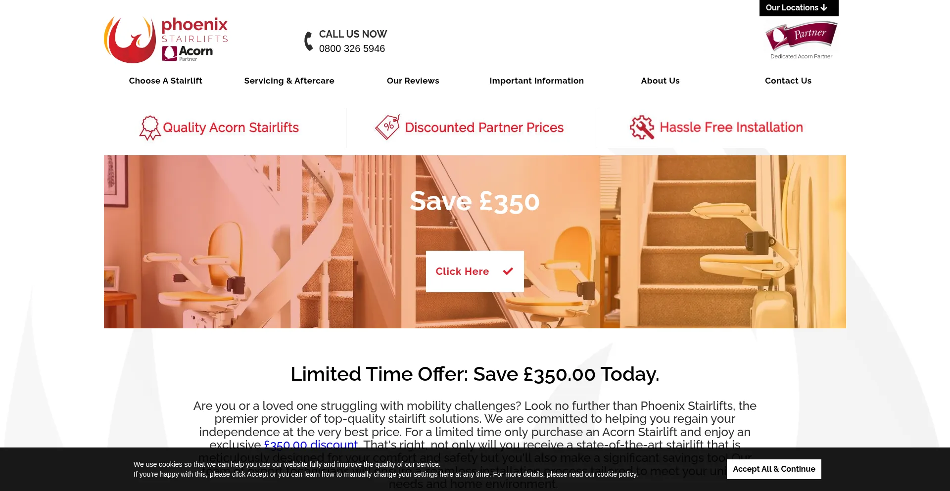 该网站实现符合GDPR或CCPA等隐私法规的cookie同意机制。这表明 phoenixstairlifts.co.uk 遵守数据保护标准并为用户提供对个人数据收集实践的控制。