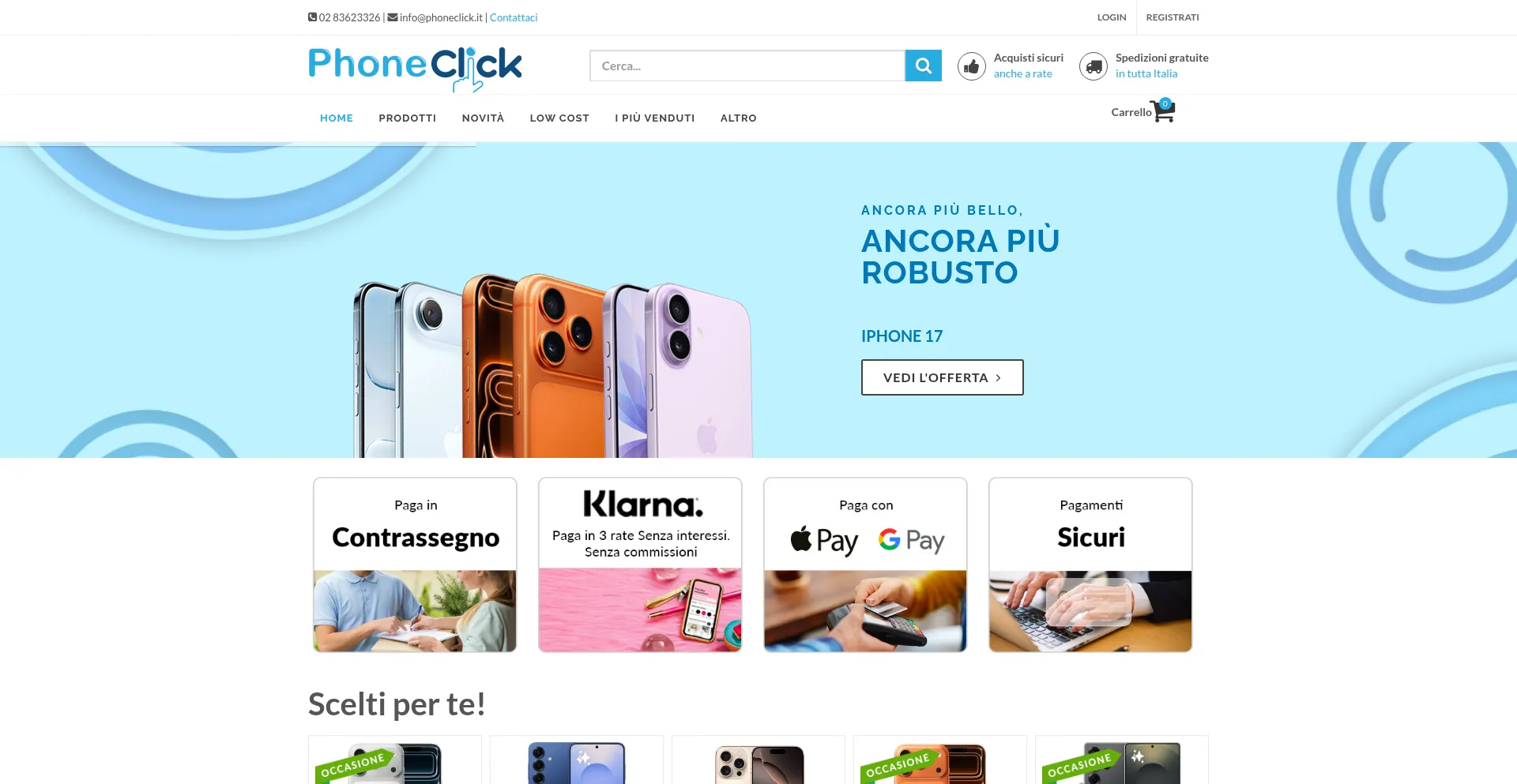 iPhone 17, iPhone 16, Samsung Galaxy e Xiaomi al miglior prezzo | Phoneclick