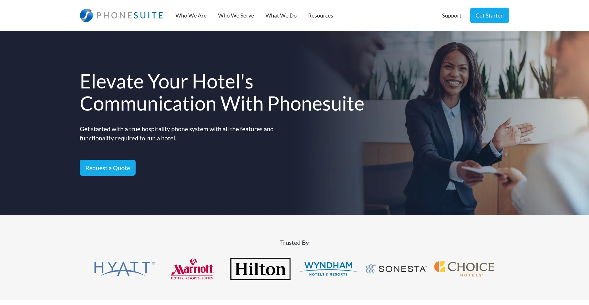 Phonesuite provides a wide array of flexible, innovative communications solutions designed specifically for hotels. Elevate your communications today.