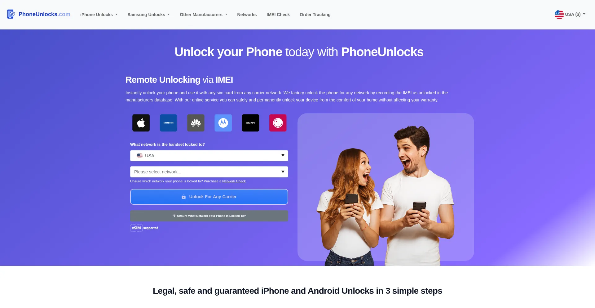 Instantly unlock phone and use any carrier/network. With our online phone unlock service you can safely and permanently unlock your device from the comfort of your home.