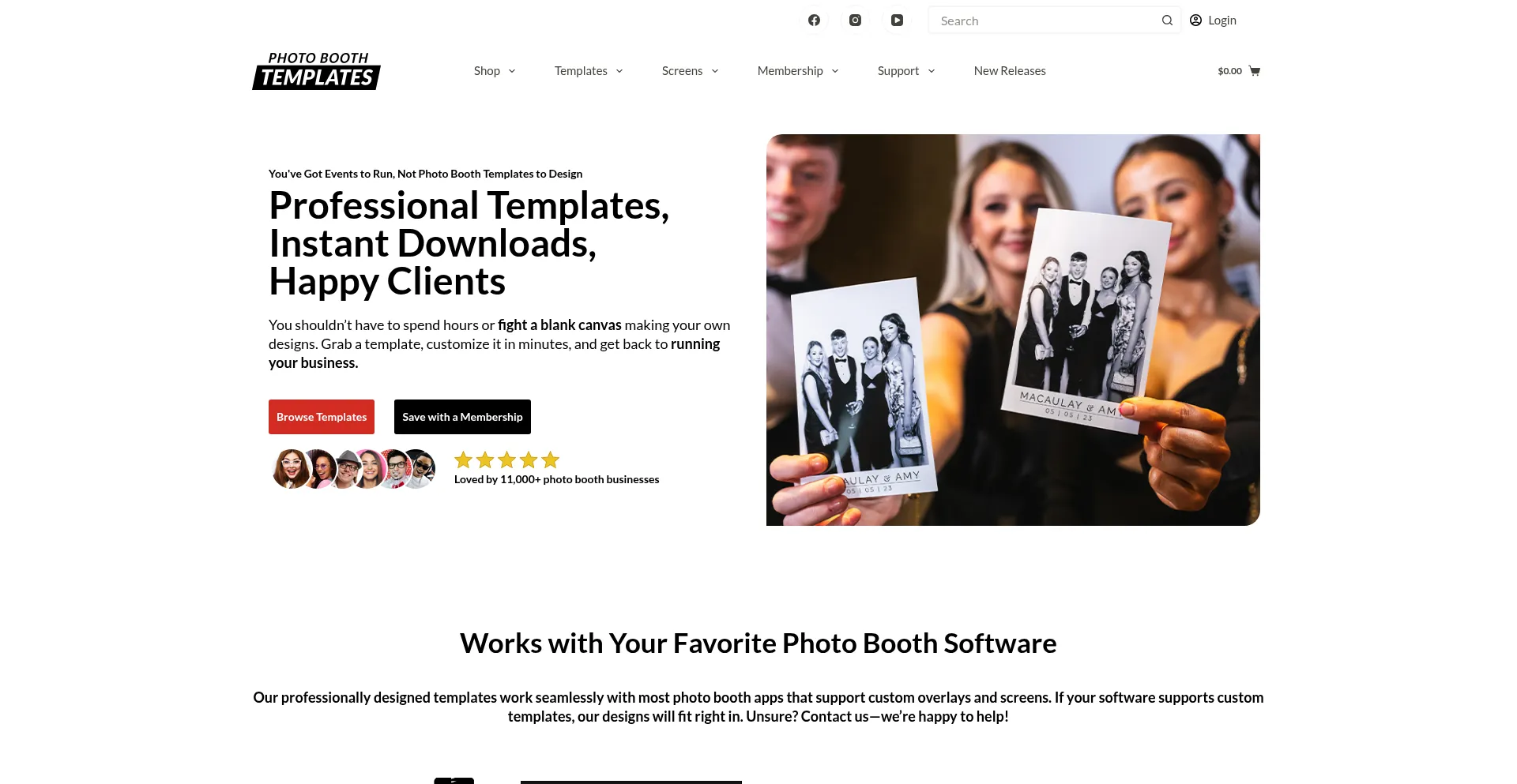 Photo booth templates designed for busy event pros. Download, customize, and impress—no design skills needed. Works with Snappic, Breeze & more.