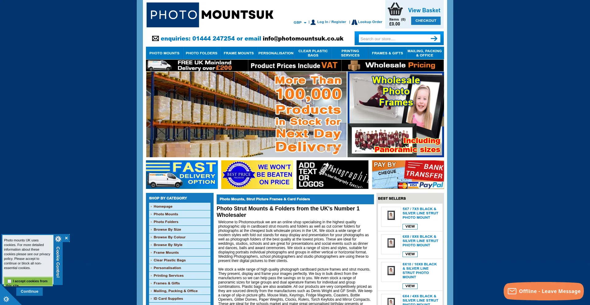 Photo mounts, UK suppliers of picture mounts and photograph frames, strut frame, cardboard folder, cut corner folders for school and company use.