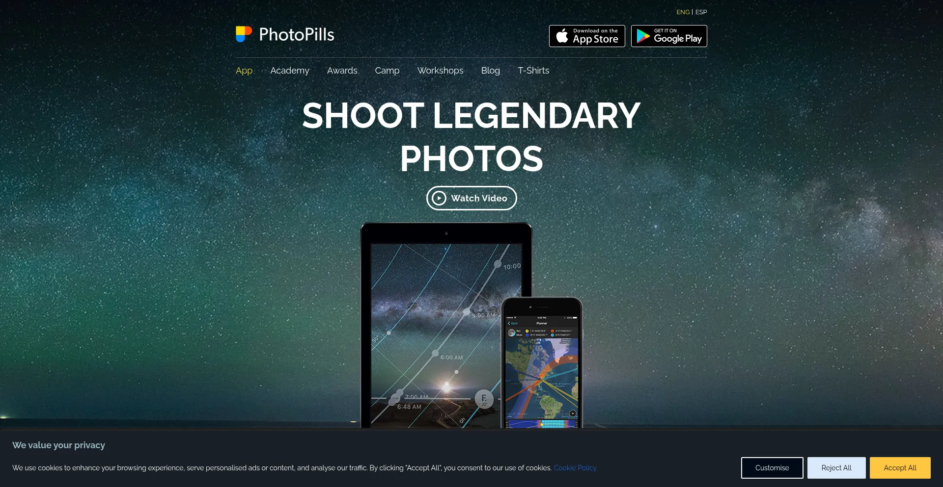 该网站实现符合GDPR或CCPA等隐私法规的cookie同意机制。这表明 photopills.com 遵守数据保护标准并为用户提供对个人数据收集实践的控制。