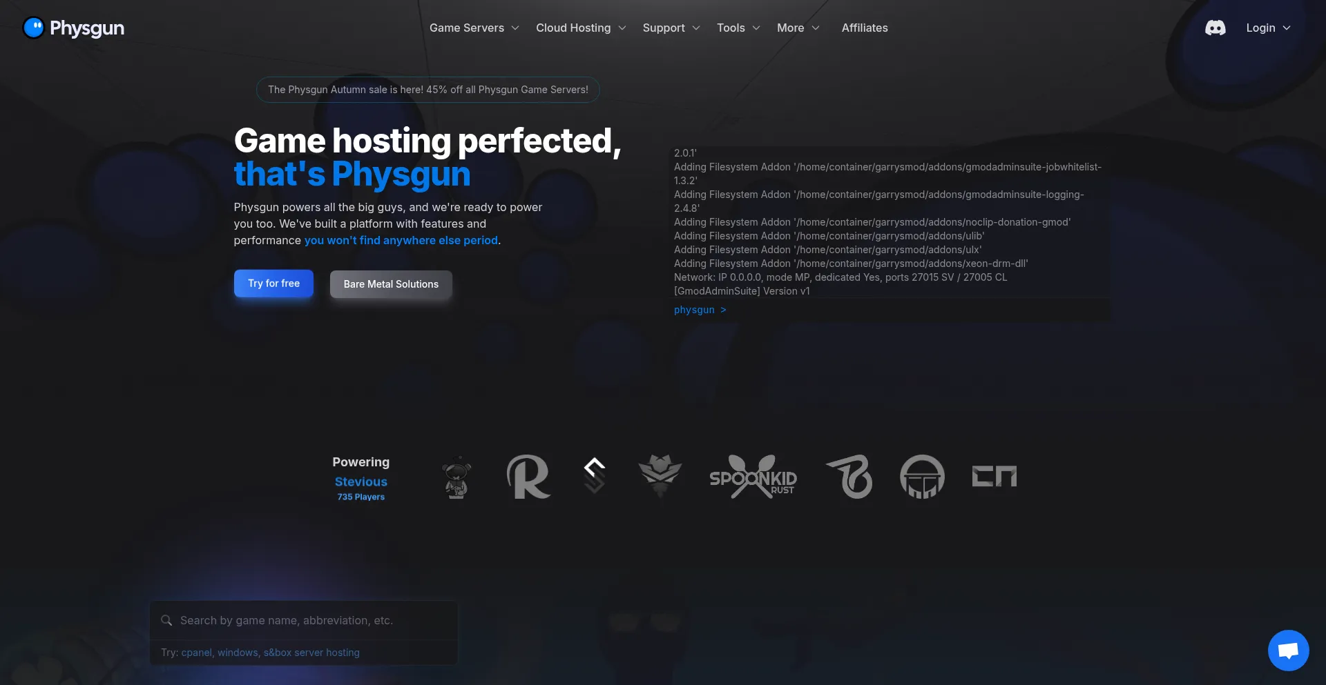 Physgun makes it easy to host your GMod, Rust, and Minecraft server. We provide you with a cutting edge gamepanel, Anycast, DDoS protection and much more. GMod Server Hosting, R...