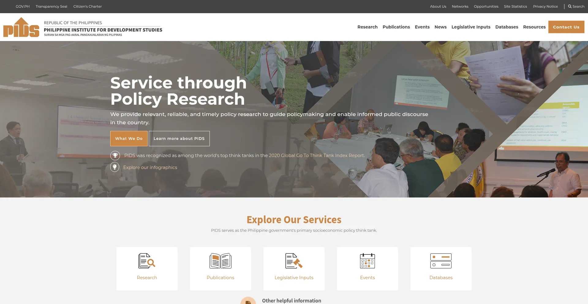 网站上存在社交媒体链接表明 pids.gov.ph 在社交媒体上维护官方账户,这是可信度和参与度的积极信号。