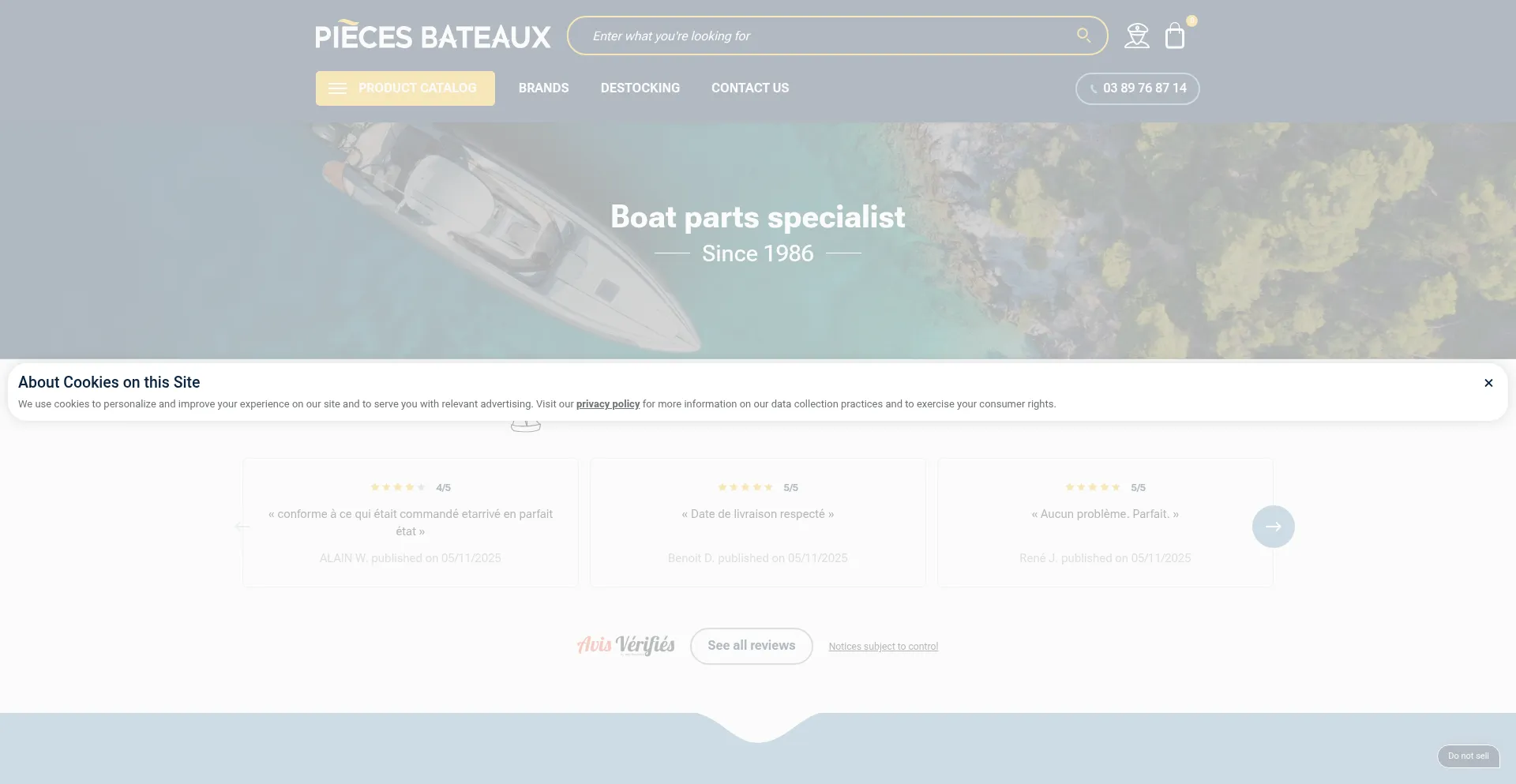 该网站实现符合GDPR或CCPA等隐私法规的cookie同意机制。这表明 piecesbateaux.com 遵守数据保护标准并为用户提供对个人数据收集实践的控制。