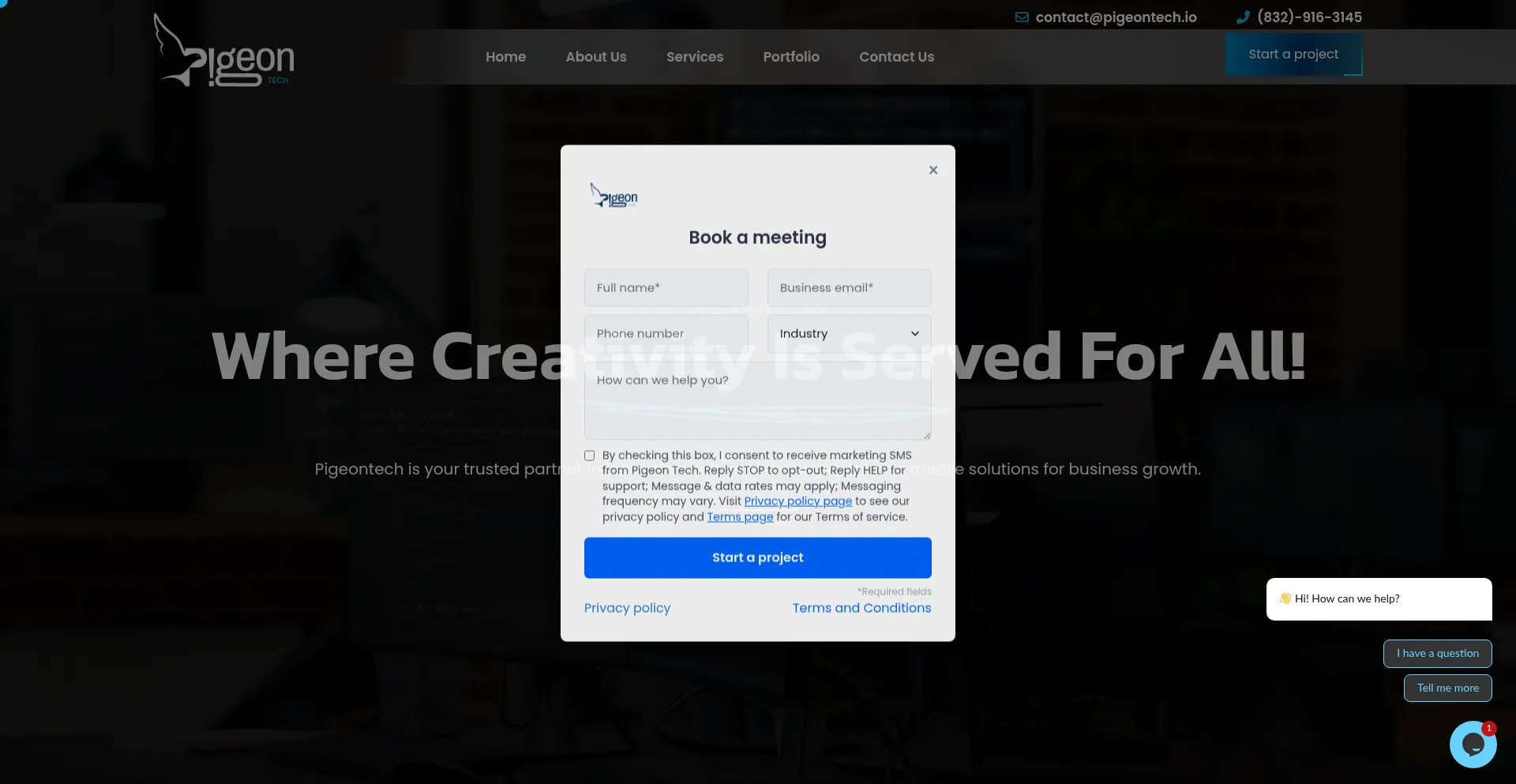 该网站实现数据收集表单,请求个人信息,包括姓名、电子邮件地址、电话号码或其他敏感详细信息。用户应验证 pigeontech.io 的合法性并在提交个人数据前查看隐私政策。