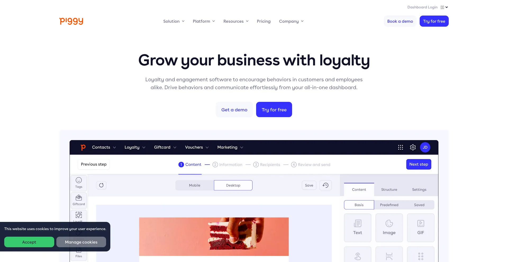 piggy.nl 使用 Google Tag Manager 在其网站上添加和更新追踪代码(标签)。
