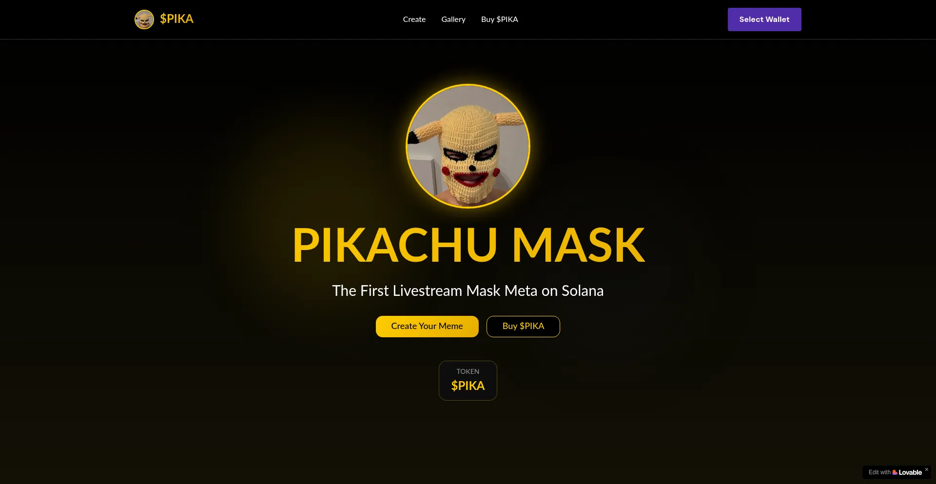 $PIKA - Pikachu Mask | The First Livestream Mask Meta on Solana