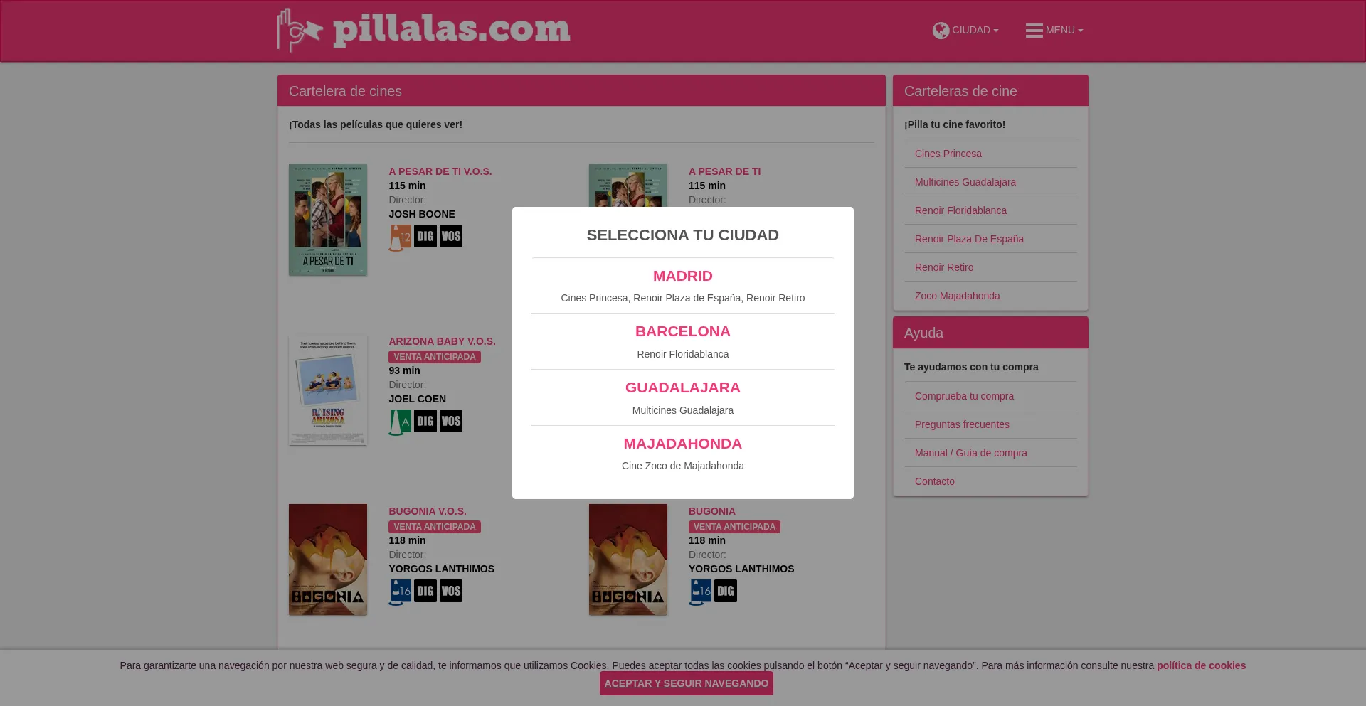 Compra entradas para tus películas de Cines Princesa, Renoir Plaza de España, Renoir Retiro, Renoir Floridablanca, Multicines Guadalajara, Cines Zoco de Majadahonda en Pillala...