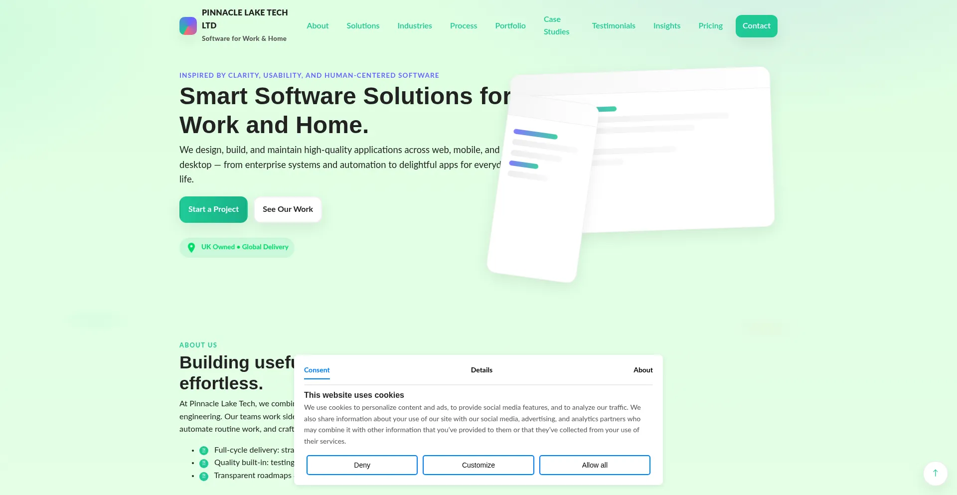 Pinnacle Lake Tech Ltd — Smart Software Solutions for Work and Home