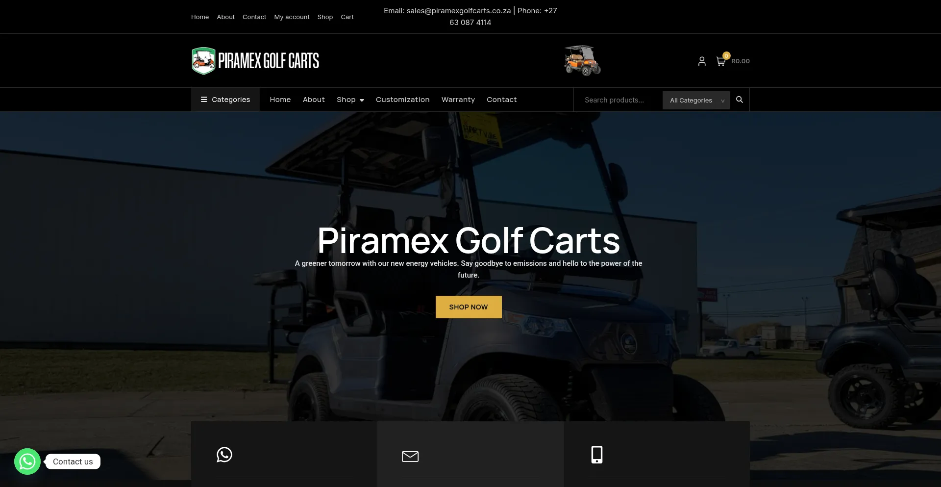 分析表明 piramexgolfcarts.co.za 作为电子商务平台运营,促进商品或服务的在线交易。该网站实现了购物车功能、支付处理系统和产品目录功能,这些是商业零售运营的典型特征。