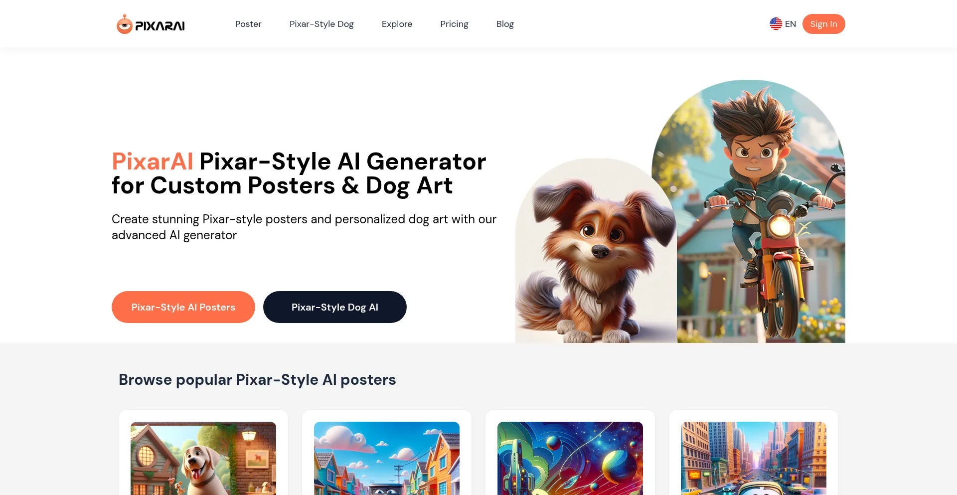 Pixar-Style AI Generator for Custom Posters, Memes & Dog Art | PixarAI