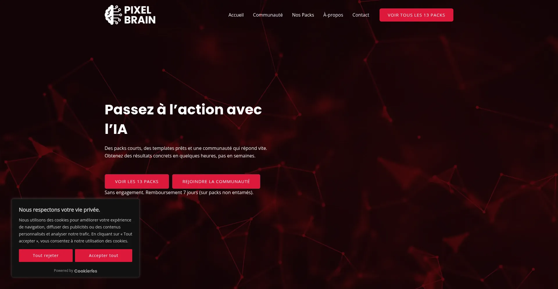 该网站实现符合GDPR或CCPA等隐私法规的cookie同意机制。这表明 pixelbrain.pro 遵守数据保护标准并为用户提供对个人数据收集实践的控制。