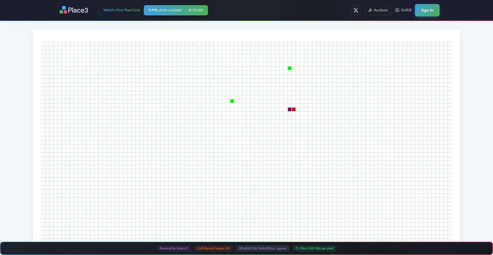 Place3 - Own pixels, earn $PLACE3 tokens. The first decentralized pixel canvas on BSC.