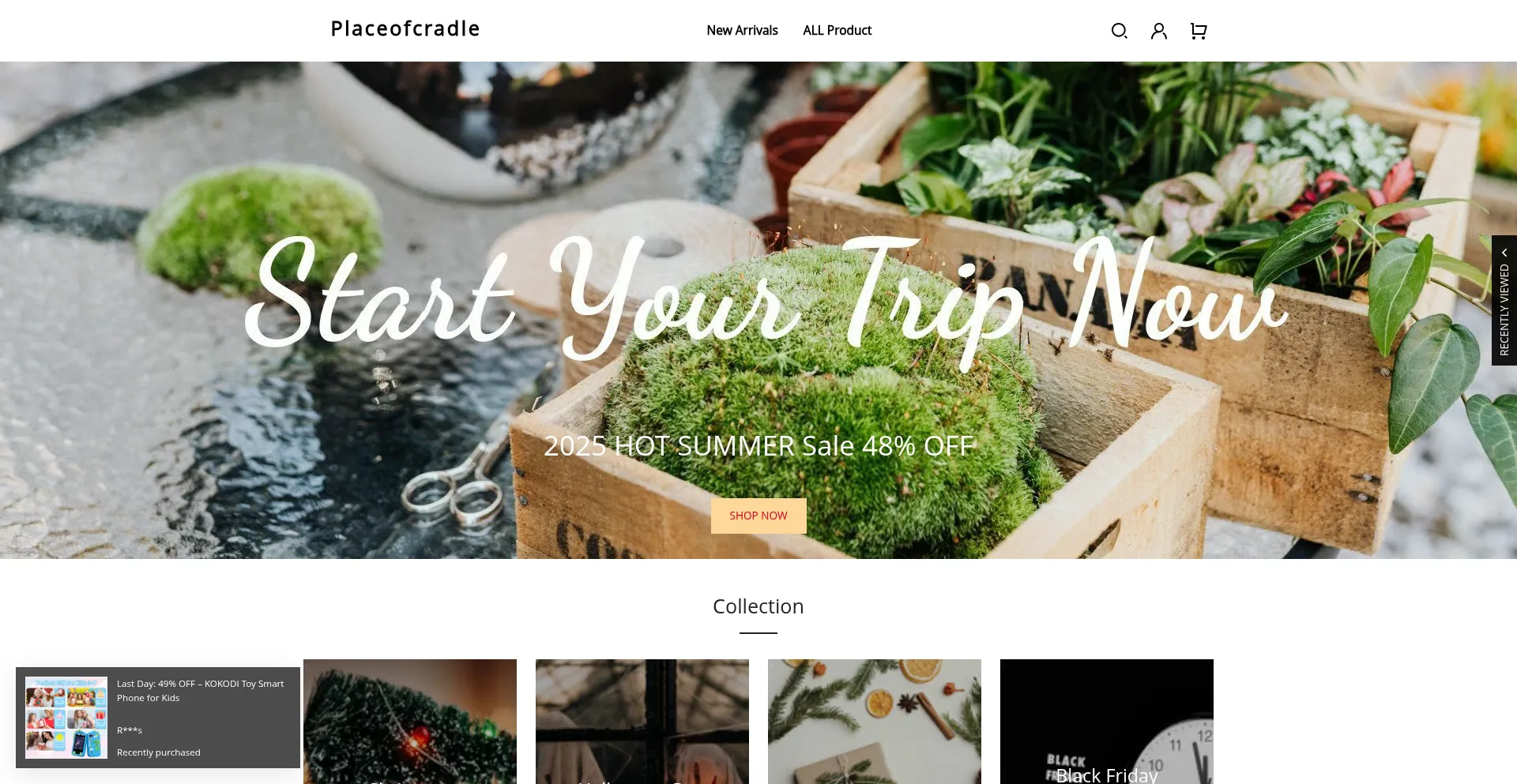 分析表明 placeofcradle.com 作为电子商务平台运营,促进商品或服务的在线交易。该网站实现了购物车功能、支付处理系统和产品目录功能,这些是商业零售运营的典型特征。