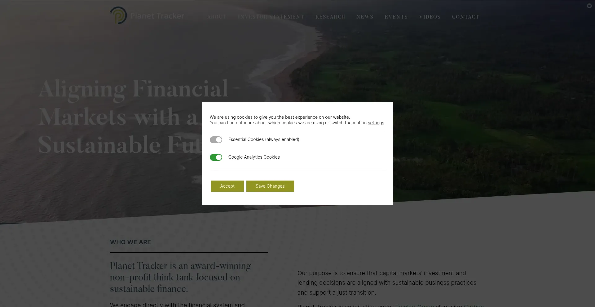 Aligning Financial Markets for a Sustainable Future. Planet Tracker is an award-winning non-profit think tank focused on sustainable finance.