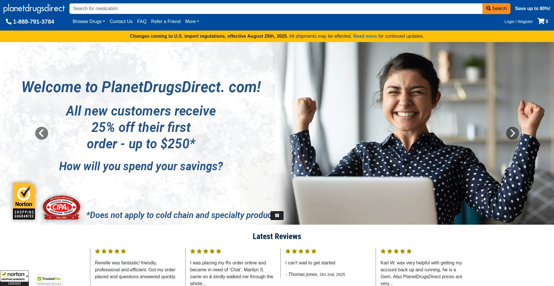 帮助保护他人,快在社交媒体上分享此页面吧!知道planetdrugsdirect.com的人越多,骗子就越难得逞。 通过在社交媒体上分享此页面,帮助更多人发现可靠的planetdrugsdirect.com吧!