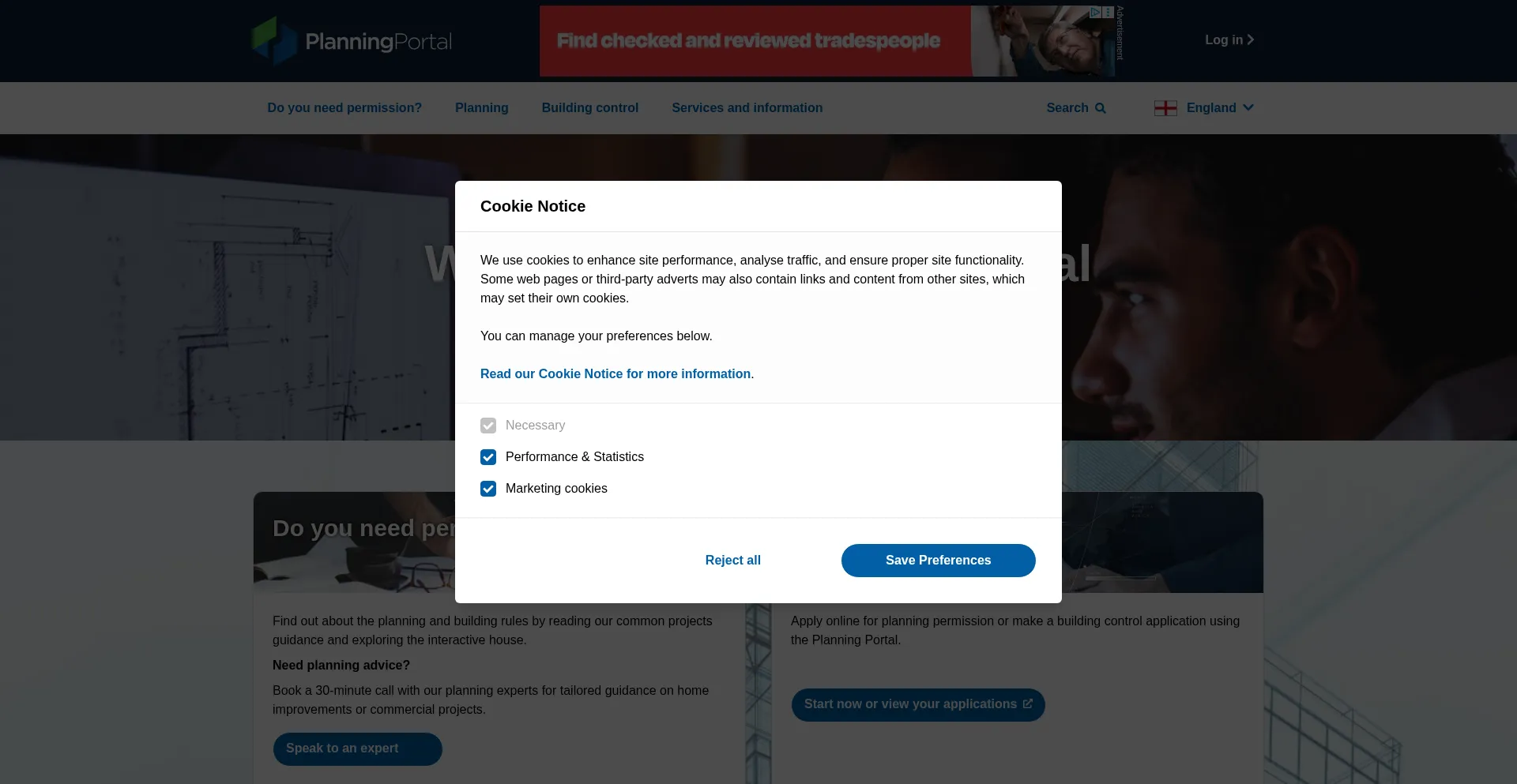 该网站实现符合GDPR或CCPA等隐私法规的cookie同意机制。这表明 planningportal.co.uk 遵守数据保护标准并为用户提供对个人数据收集实践的控制。