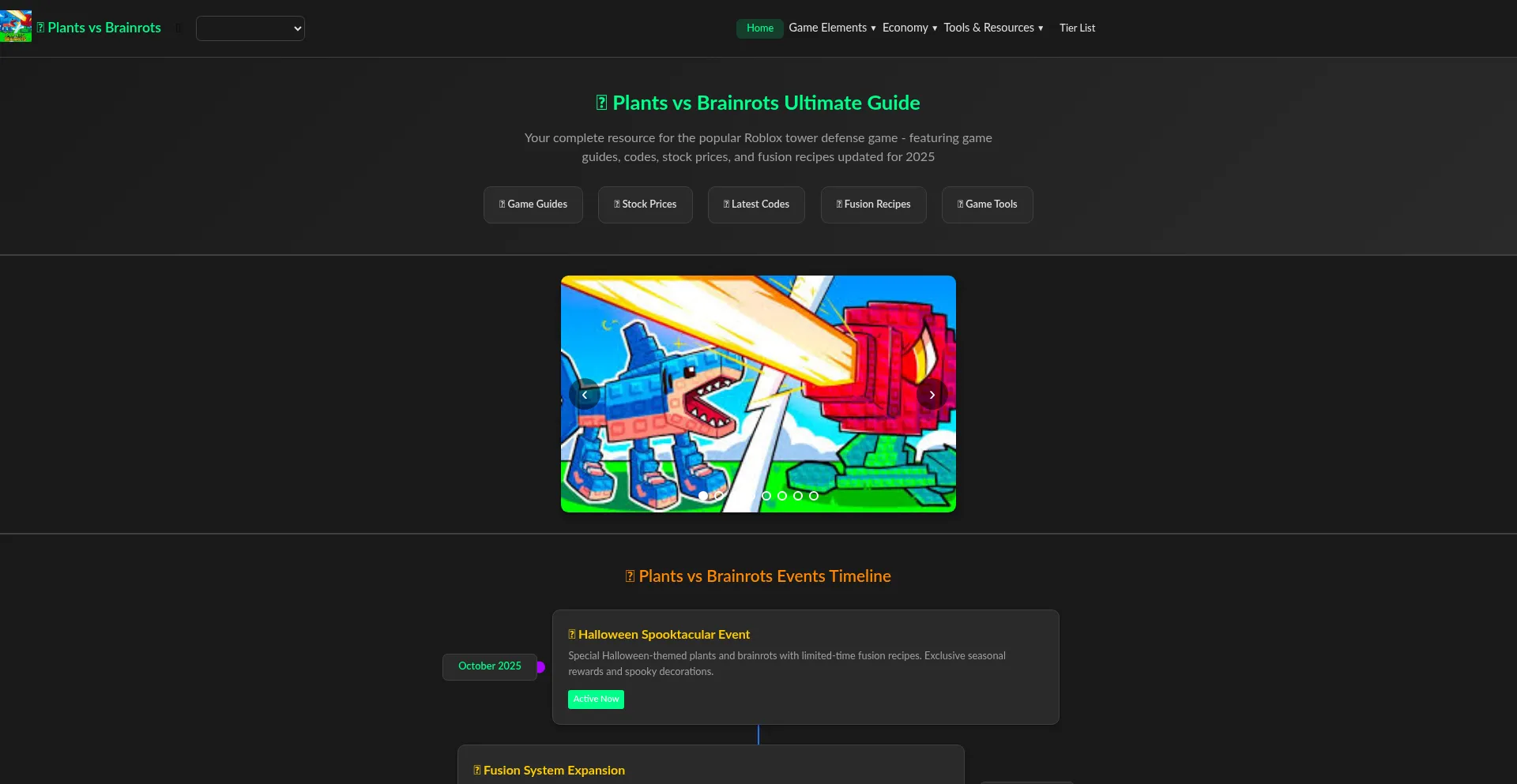 Plants vs Brainrots - Complete game guide, wiki, codes, stock prices, fusion recipes and more for the popular Roblox tower defense game. Your ultimate resource for Plants vs Bra...