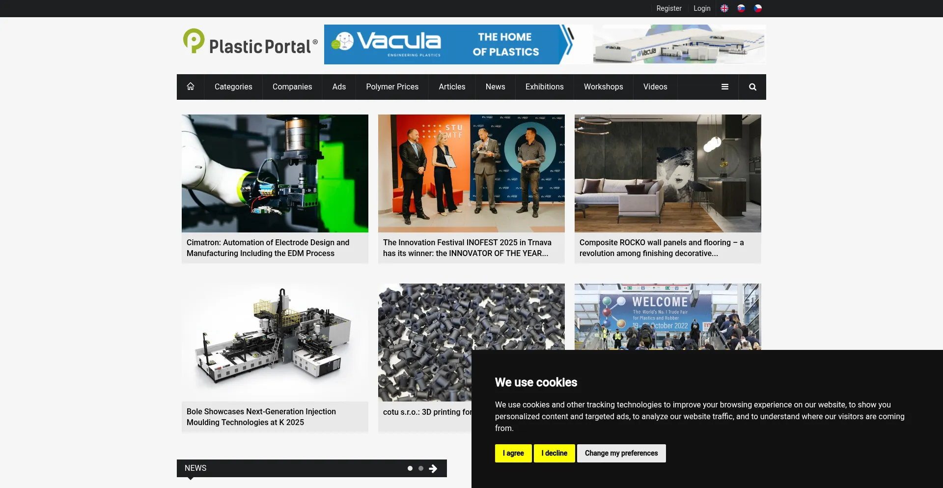 Daily updated portal associating companies operating in the plastics industry. Classifieds - Sales, Purchase, Labor Market, News, Articles, Calendar of Seminars and Exhibitions....