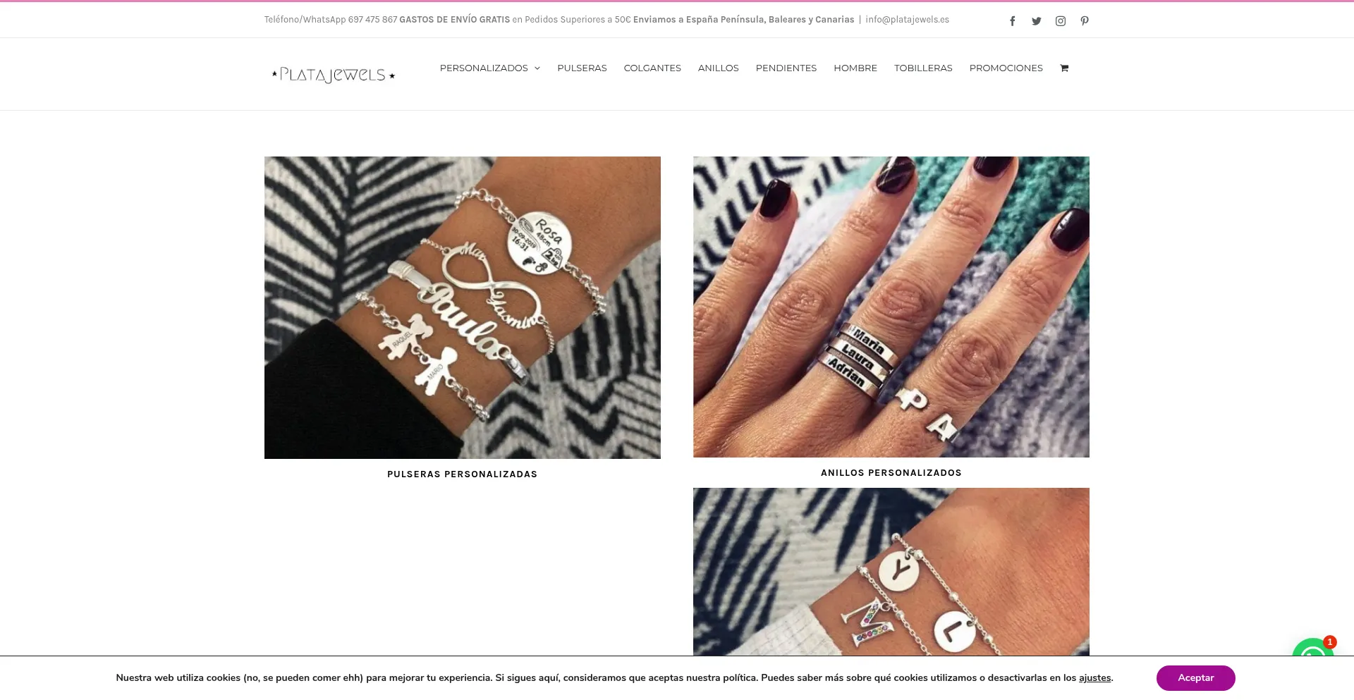 Joyas personalizadas íntegras Plata de Ley 925. Fabricadas en España. Entrega de joyas personalizadas en sólo 5 días. Joyas sin personalizar sólo 48 Horas.