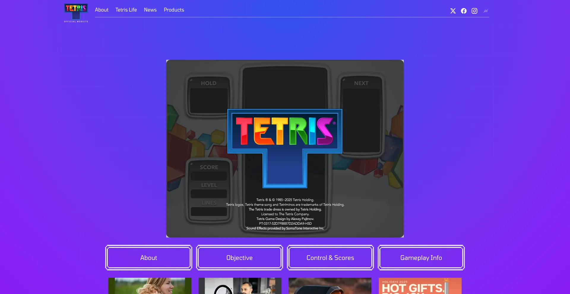 网站上存在社交媒体链接表明 play.tetris.com 在社交媒体上维护官方账户,这是可信度和参与度的积极信号。