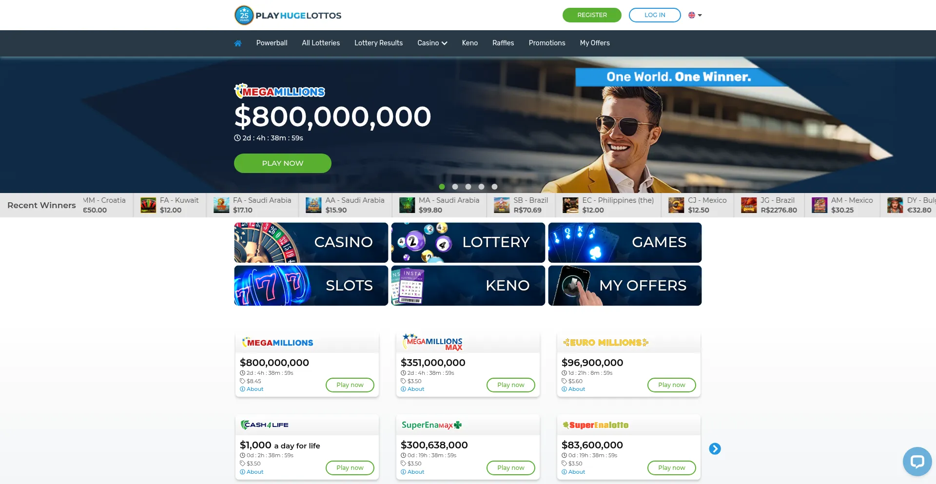 Play for the biggest lottery jackpots from around the world! Join us today! Join players worldwide chasing life-changing prizes. Buy lotto tickets online at one of the best onli...