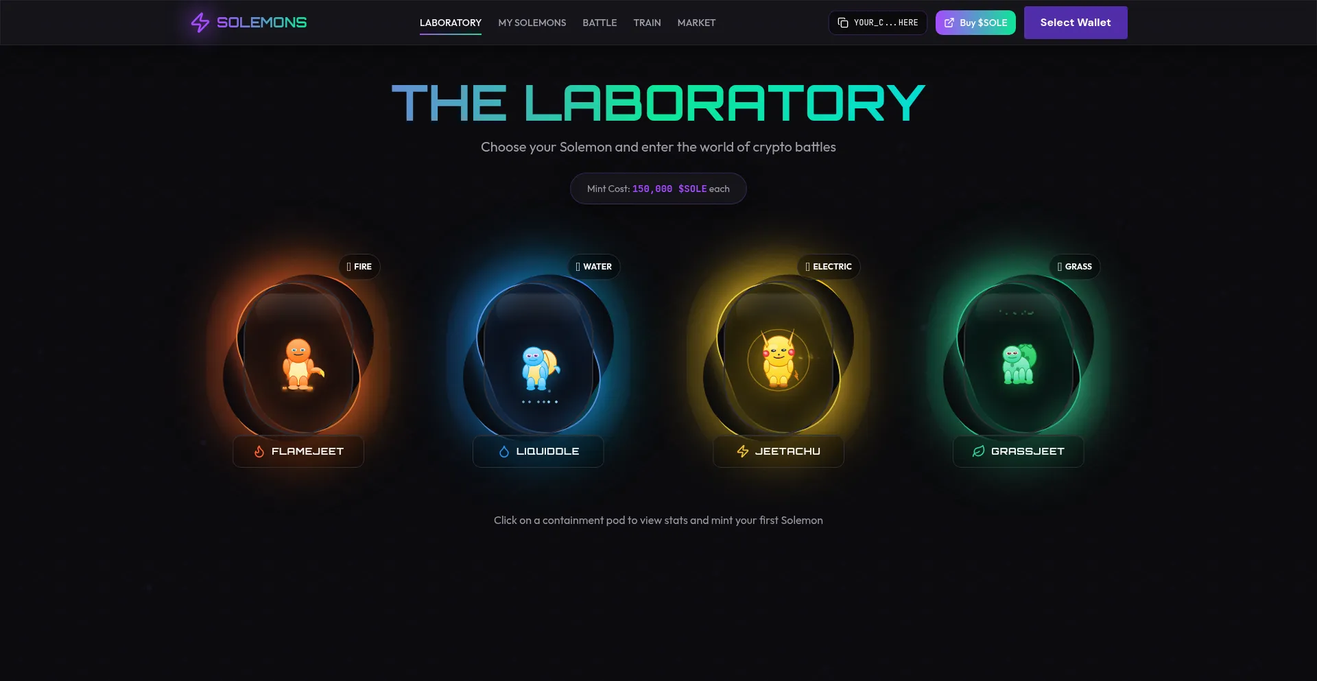 Battle, train, and trade unique Solemons on Solana. Mint your crypto creature and dominate the arena in this next-gen play-to-earn blockchain game.