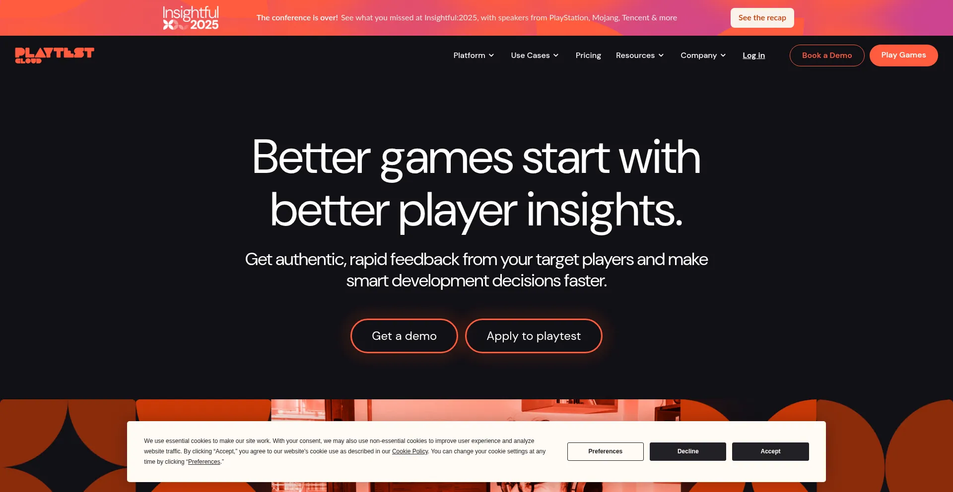 Playtest PC games, mobile games, browser games and Steam games on the Player Insights Platform™. Scale your games user research and get unmatched player insights, fast.