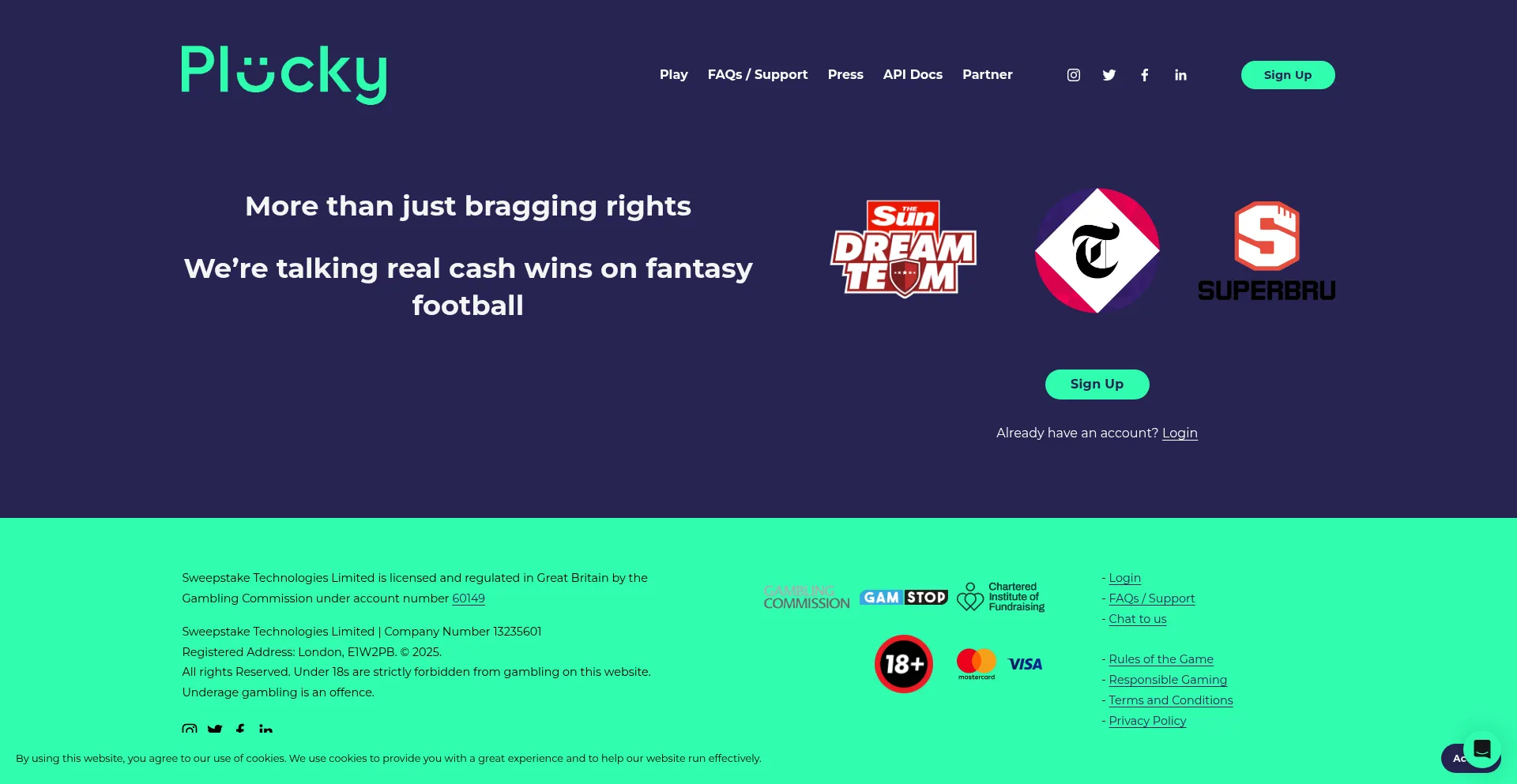 Plucky - More than just bragging rights. We're talking real cash wins, paid out instantly, on any event or games of luck or skill. Fantasy Football, Sun Dream Team, Telegraph Fantasy Football, Superbru, Sixes Cricket. Plucky