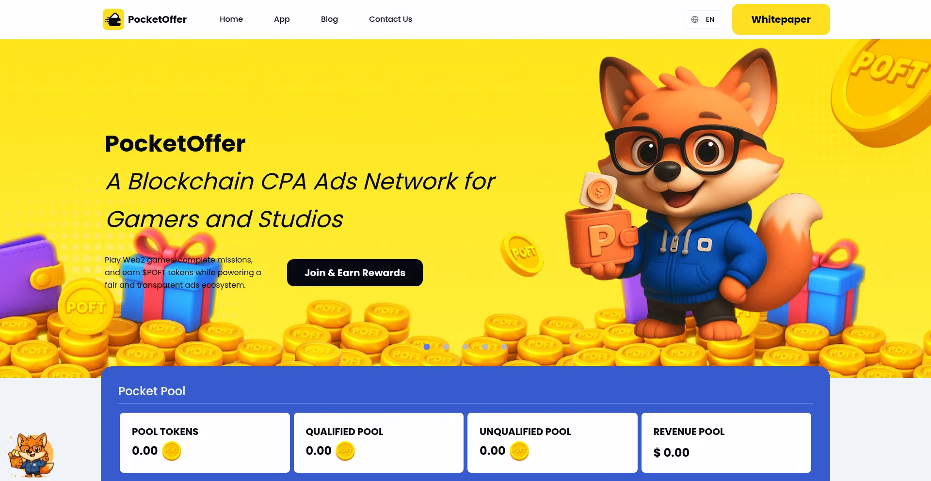 PocketOffer is a Blockchain CPA game ads network & offerwall. Players complete in-game tasks to earn $POFT rewards; game studios acquire real, high-quality users with transparen...