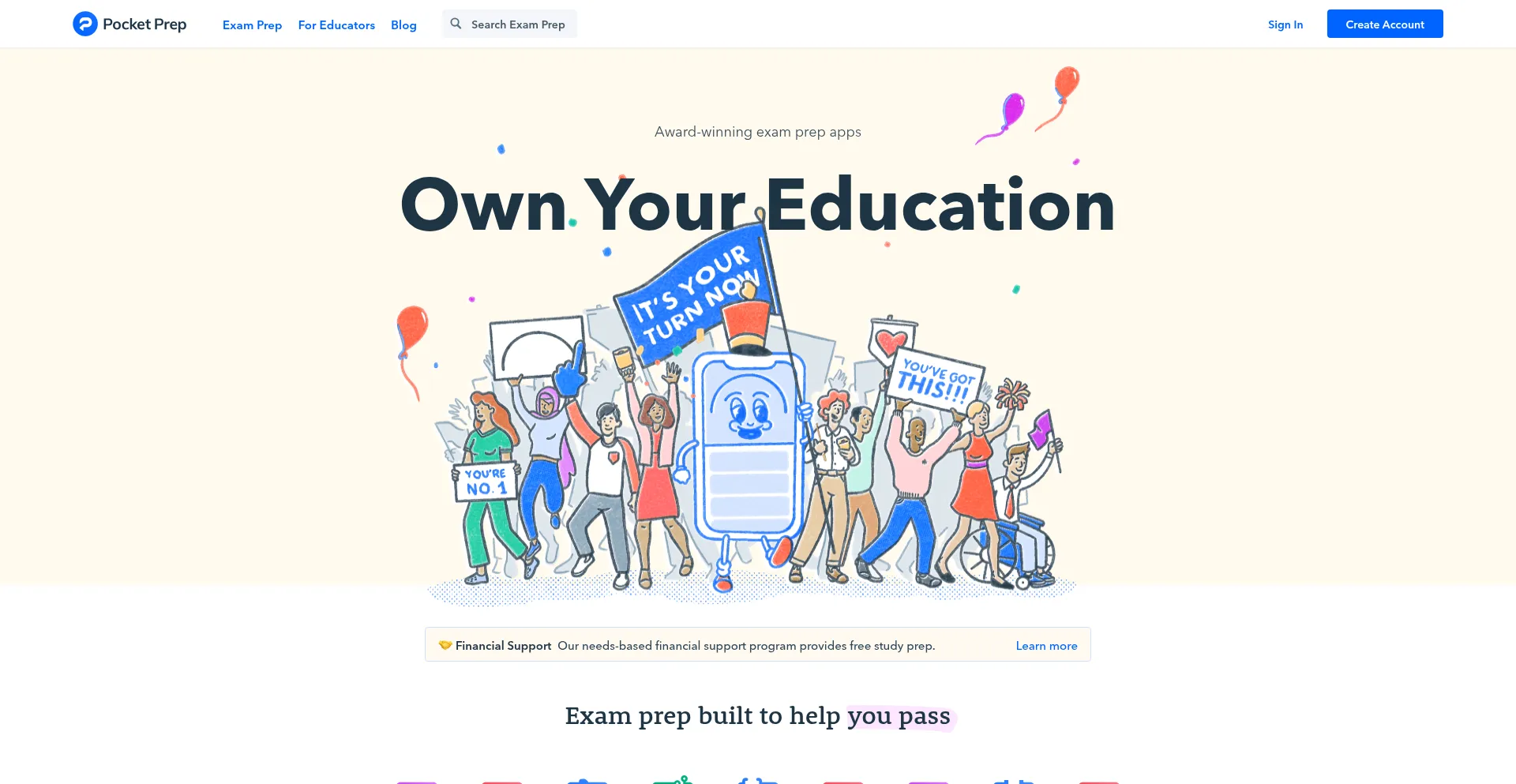 Pocket Prep offers award-winning exam prep apps. With over 135 exams to pick from, our exam prep can help put you on the path to success. Browse our exams.