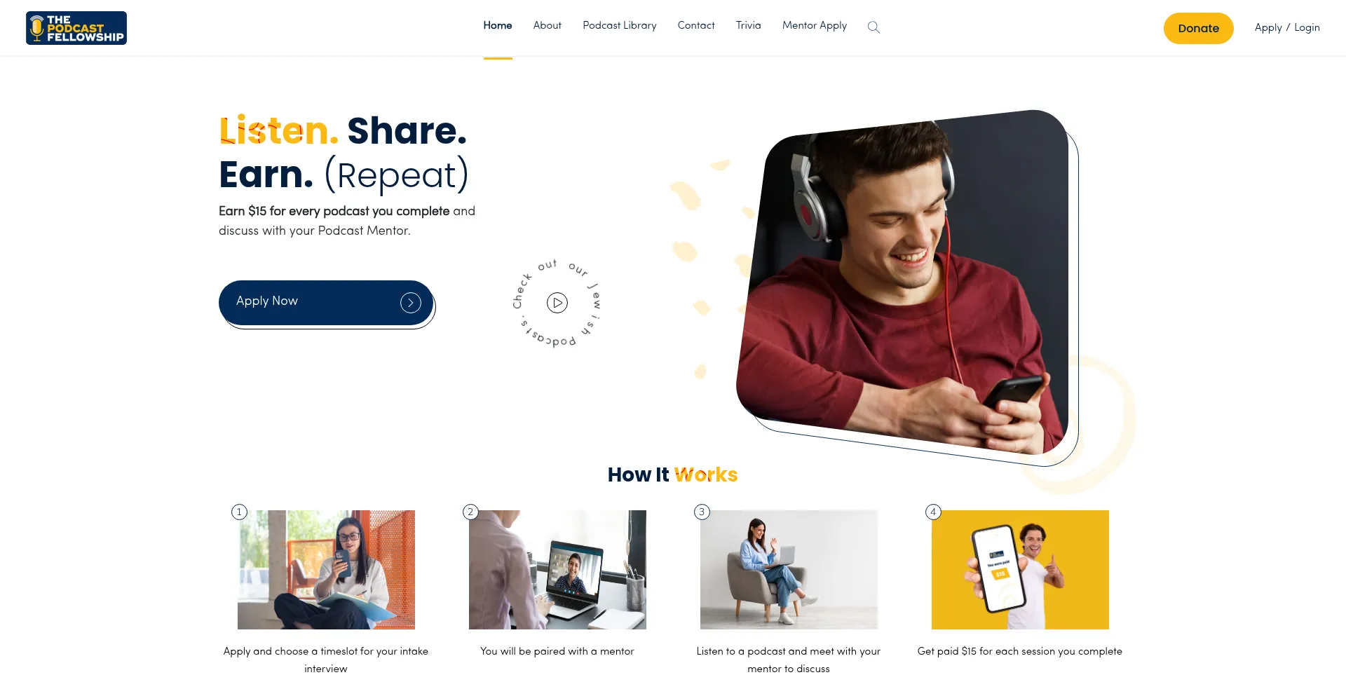 Earn $15 for each podcast you listen to and discuss with a mentor