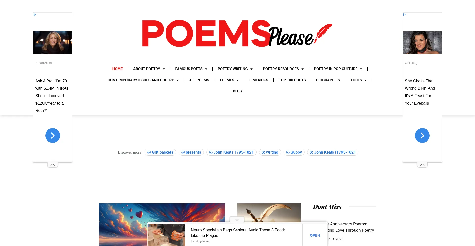 Welcome to Poems Please, a place to discover the magic of poetry. Find your favorite poems, unleash your inner poet, and explore the world of verse with us.